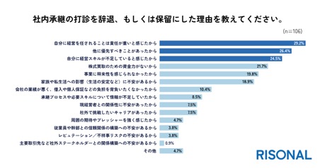 - 社内承継を辞退する最大要因は「責任の重さ」